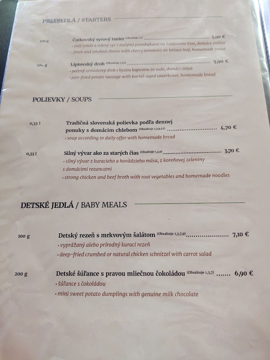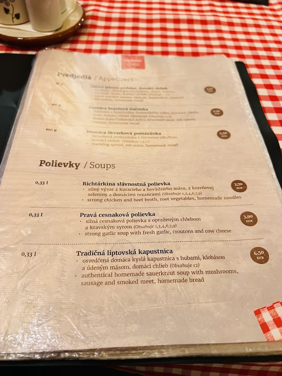 The menu features hearty dishes like the superb Kapustnica, which is thick, flavorful, and far from overly sour. Guests rave about the local specialty, Potato sausage, praised for its comforting warmth and delightful texture. The atmosphere is inviting, with traditional decor that immerses you in the Slovak culture.